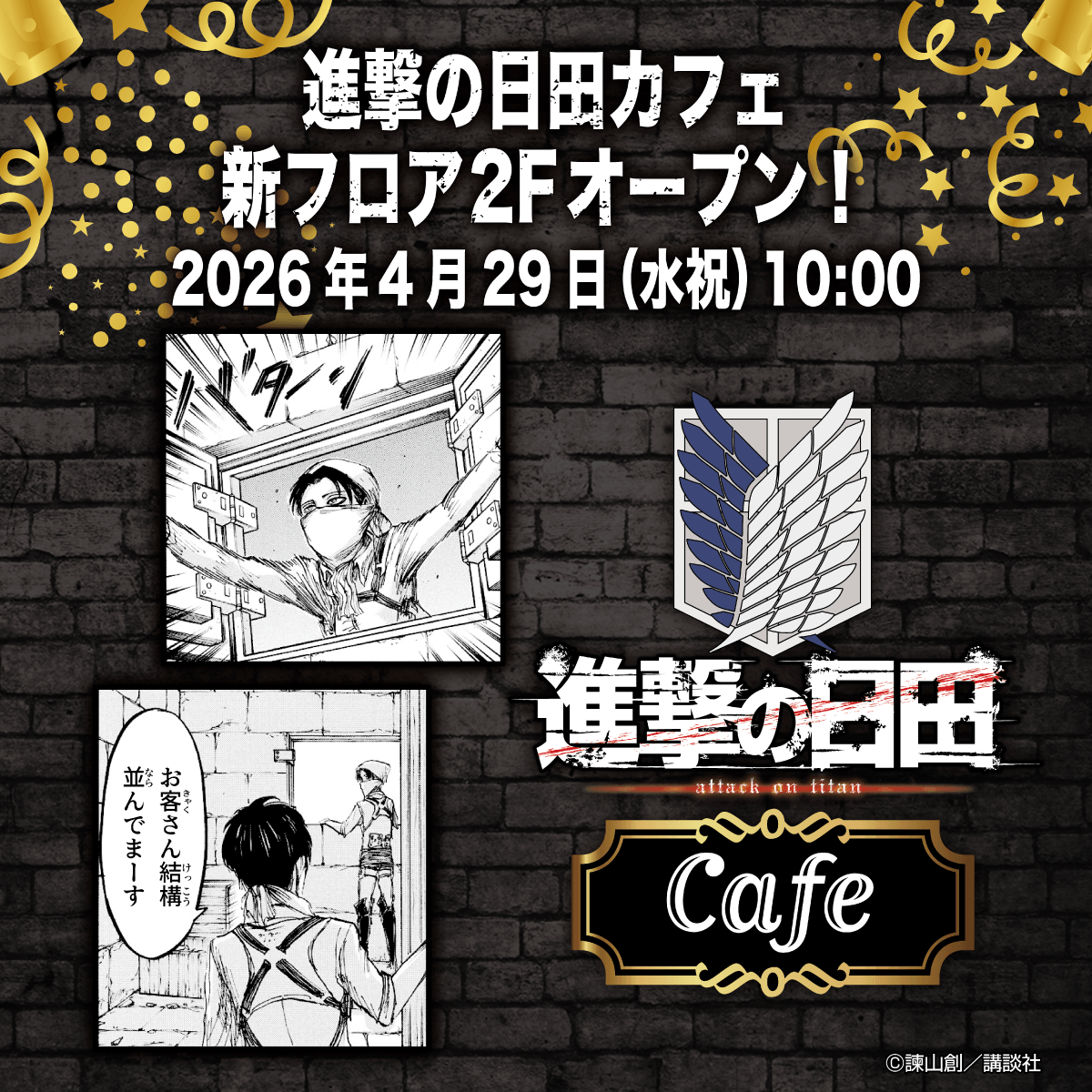 人気スポットの一つである「進撃の巨人 in HITAミュージアム」(道の駅 水辺の郷おおやま 敷地内/大分県日田市大山町西大山4106)において、「諫山創セレクト原画 新展示」と題し、2026年4月24日(金)より常設展示の入れ替えを行います。
