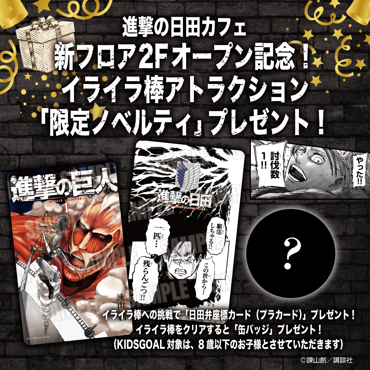 このたび、進撃の巨人ファンの皆様への感謝の気持ちを込めて、ミュージアム開館5周年 記念施策を展開いたします。