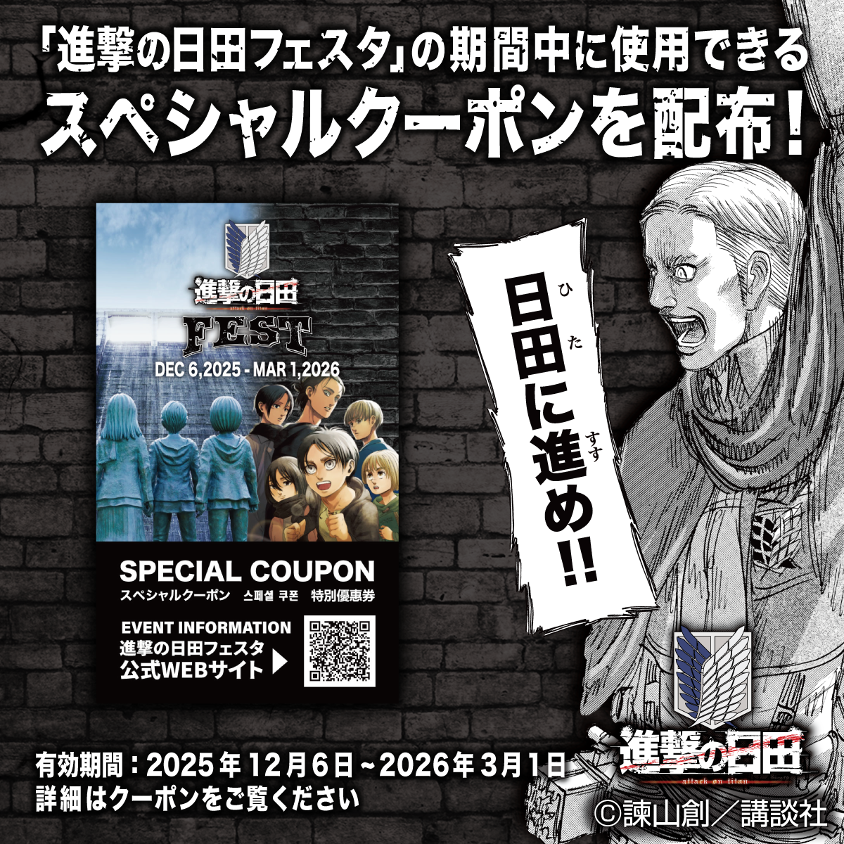 「進撃の巨人 in HITA ミュージアム ANNEX」では、これからも様々な企画を用意して、皆様のお越しを心よりお待ちしております!